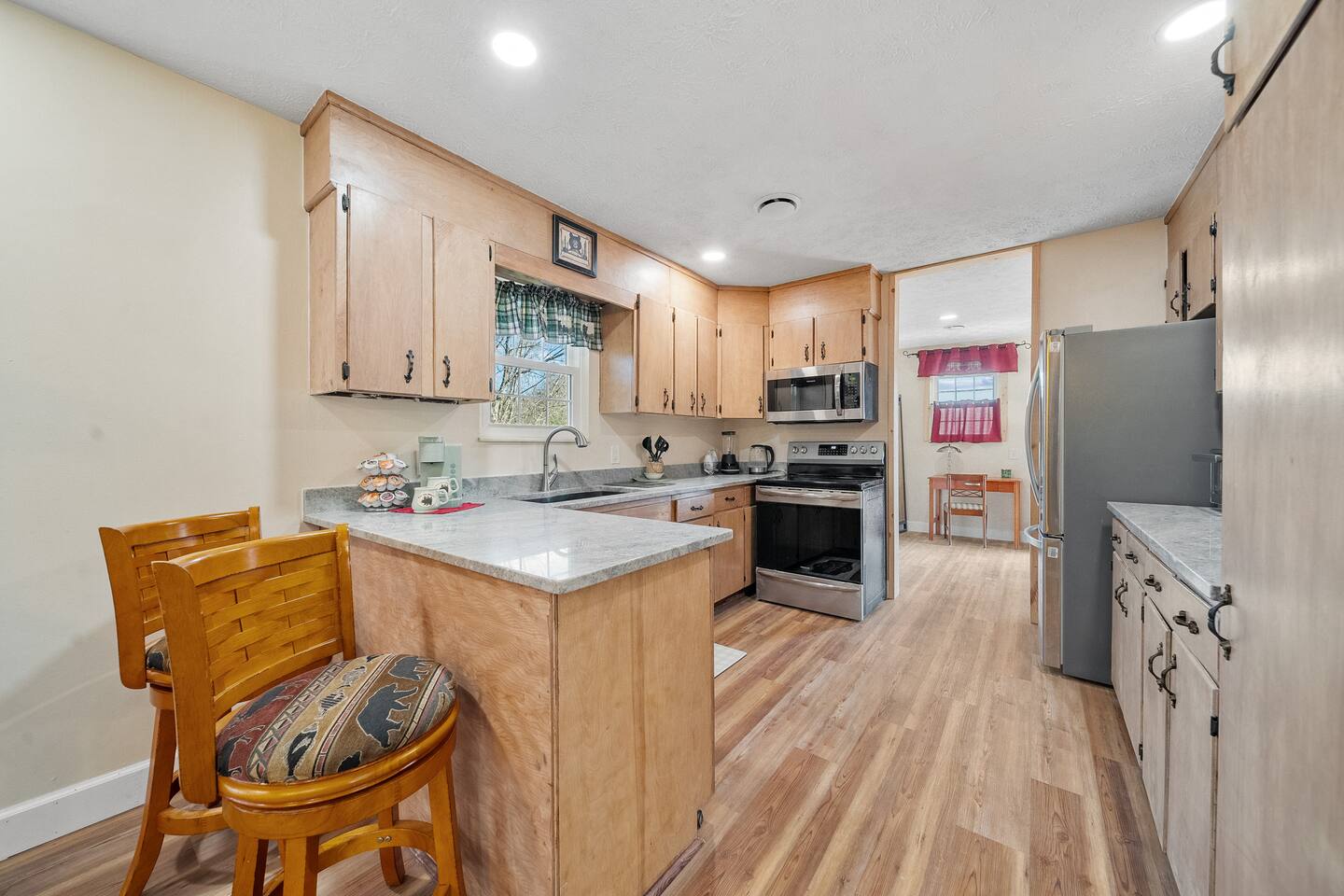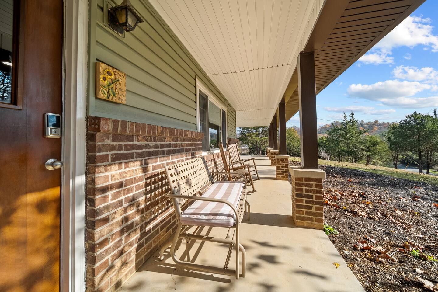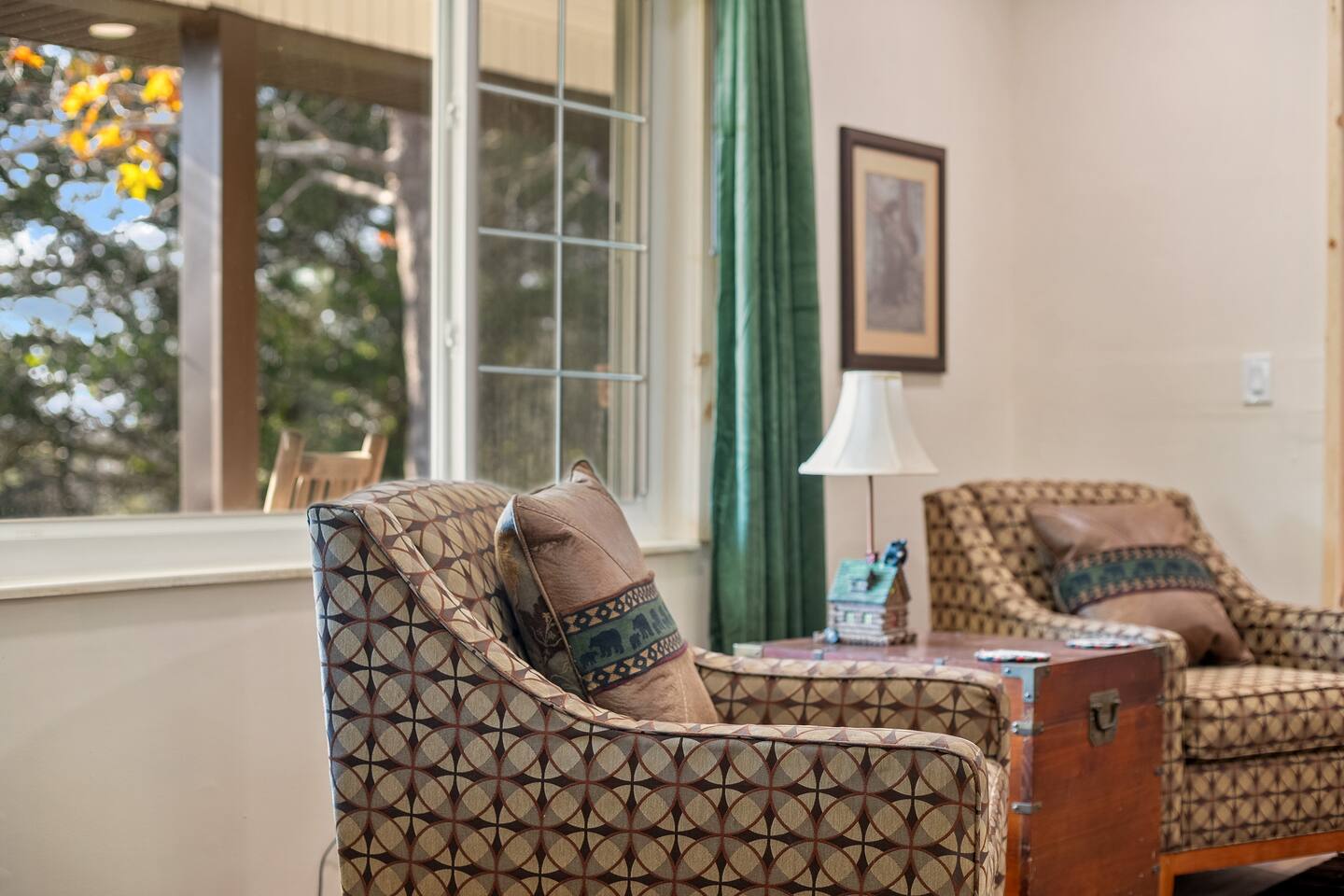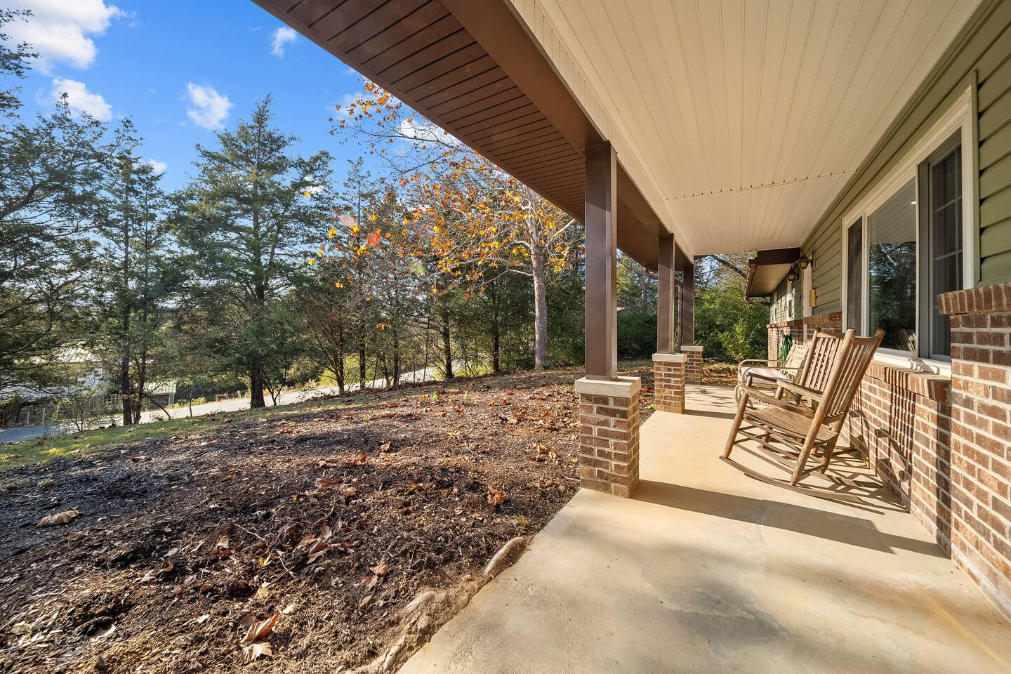 Enjoy beauty, peace and privacy paired with easy access to everywhere, in this well-located 3/2 entire Sevierville home. Features: King bed with en-suite bathroom; two queen bedrooms; an open living/dining room overlooking the treed front yard; den and kitchen viewing the fenced-in yard and porch; Wifi; dedicated workspace; fireplace; arcade games; full kitchen; and wash/dryer. 2 miles to groceries/restaurants, 3 mi to Sevier Co. Convention Ctr, 7 mi to The Island, and 8 mi to Dollywood.