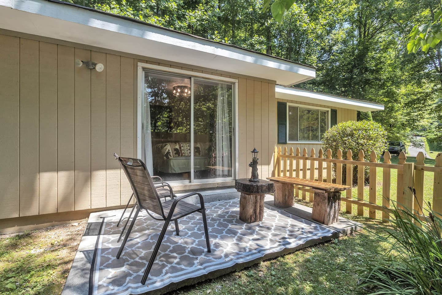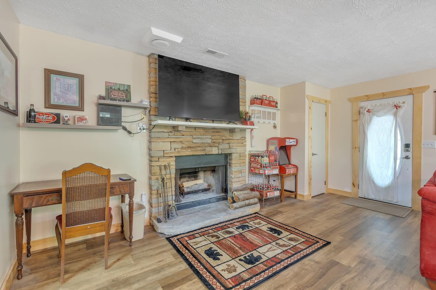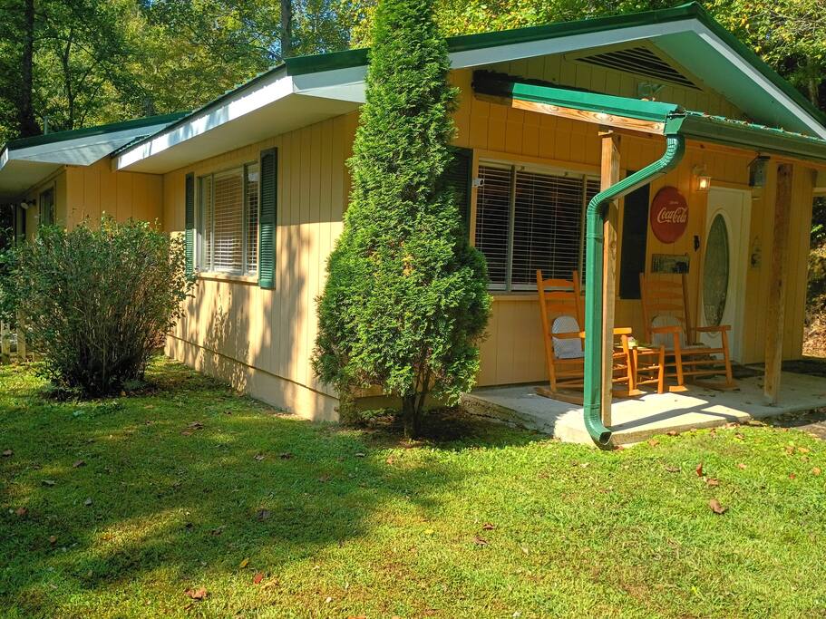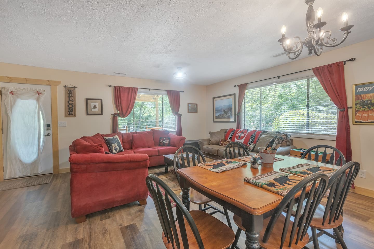 Our Cabin is perched on a hill so that you feel you are high up in the tree tops of Gatlinburg. As you enter the home, you will be welcomed into a spacious living and dining area with a fireplace, 2 couches, and a 60 inch flat panel TV, and arcade video game with over 100 games. We have a fully equipped kitchen and table with seating for 6 . We have a private driveway that will fit 3 cars. Relax and unwind, taking in the idyllic scenery in this spacious two bed, two bath cabin on a hill with the forest just feet from the back yard. Prepare meal for your family in the fully equipped kitchen, then enjoy it outside by the fire pit or inside by the cozy stone fireplace. WiFi Firepit wood burning fireplace Smart TVs- plus 1 TV w/Roku box, to stream Outdoor dining furniture Porch rocking chairs Board games Fully stocked kitchen Washer and dryer Gated backyard Charcoal grill Off-street parking up to 3 cars arcade games pet friendly with fee (Sorry no cats due to allergies). Pets need pre-approval. MEMORIES: It is truly the perfect place to make life long memories. The moment you arrive you know this is a special place. Whether you relax on the rockers on the front porch, snuggle by the fireplace, grill that perfect steak or just check out the ever changing view of the foliage as the sun sets. At the end the day, it is our desire in sharing our Den that you put you feet up and recollect on all the memories you created that last a lifetime. We always recommend 4X4 drive for anywhere in The Great Smoky Mountains during winter or when exploring more rugged areas in the mountain. Our cabin features paved road all the way up to the front porch, no steps. Without any inclement weather any car should be fine but again, we recommend all wheel drive when visiting the area.