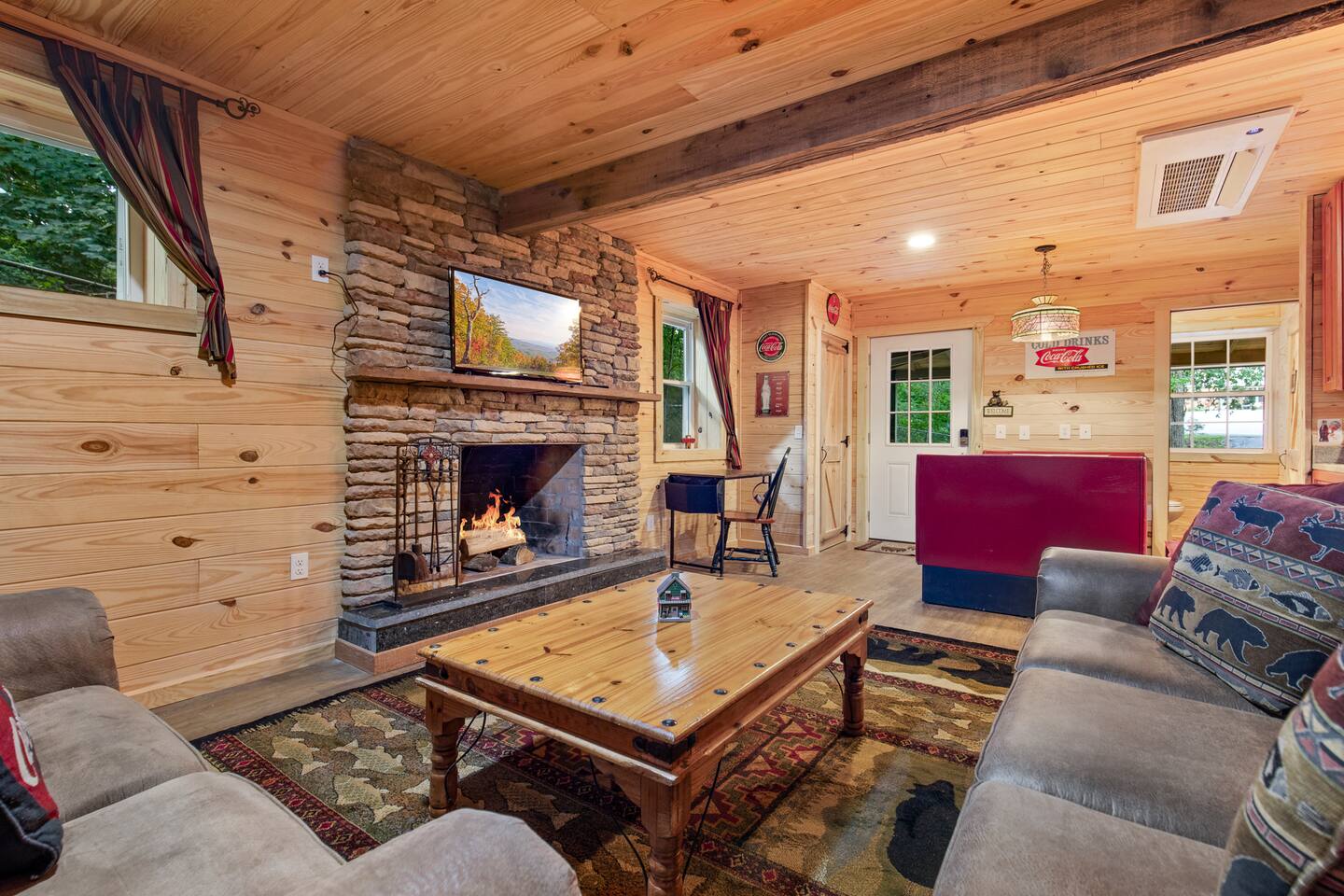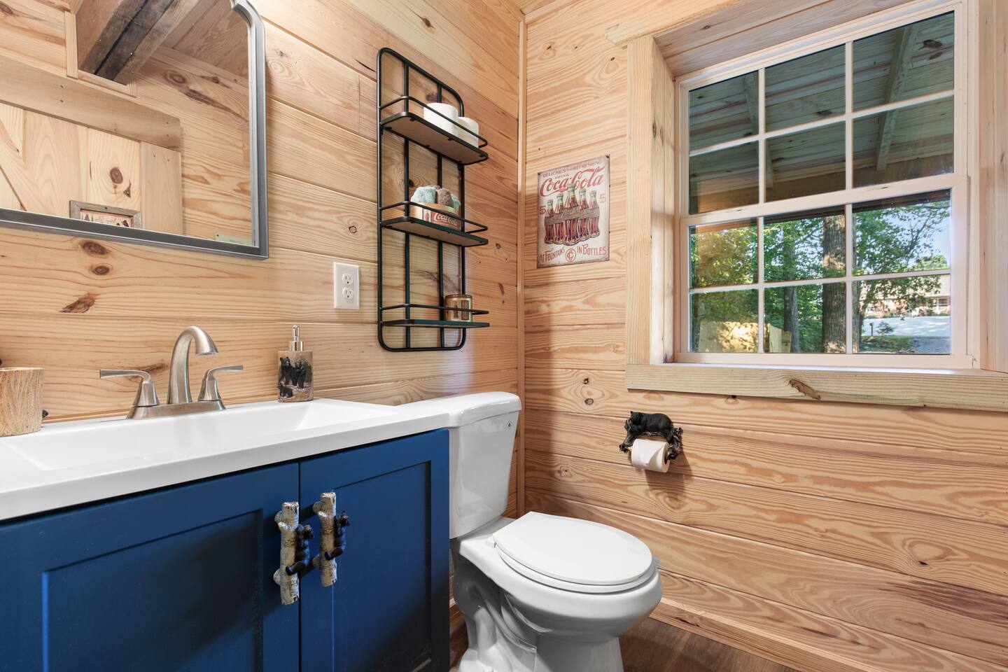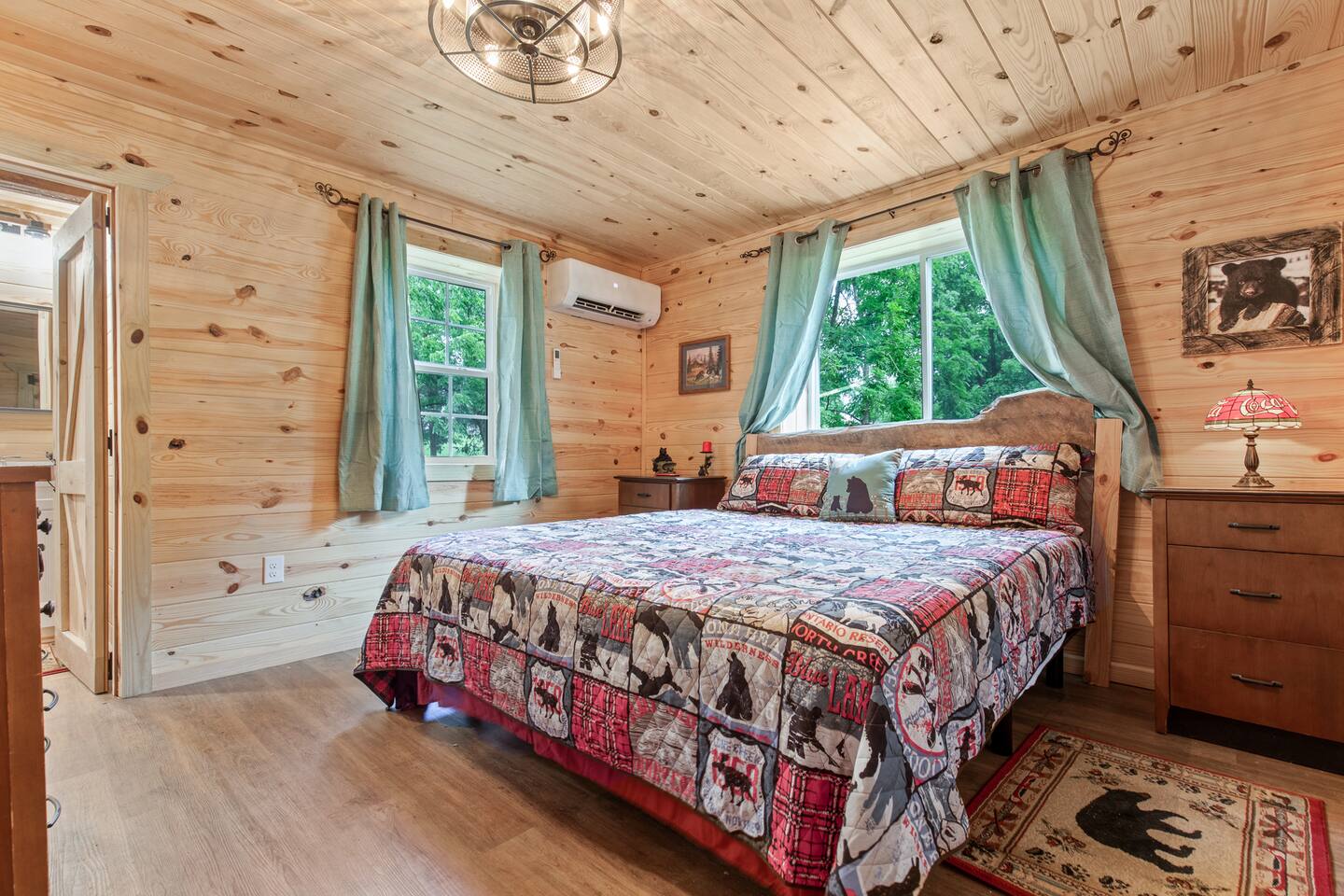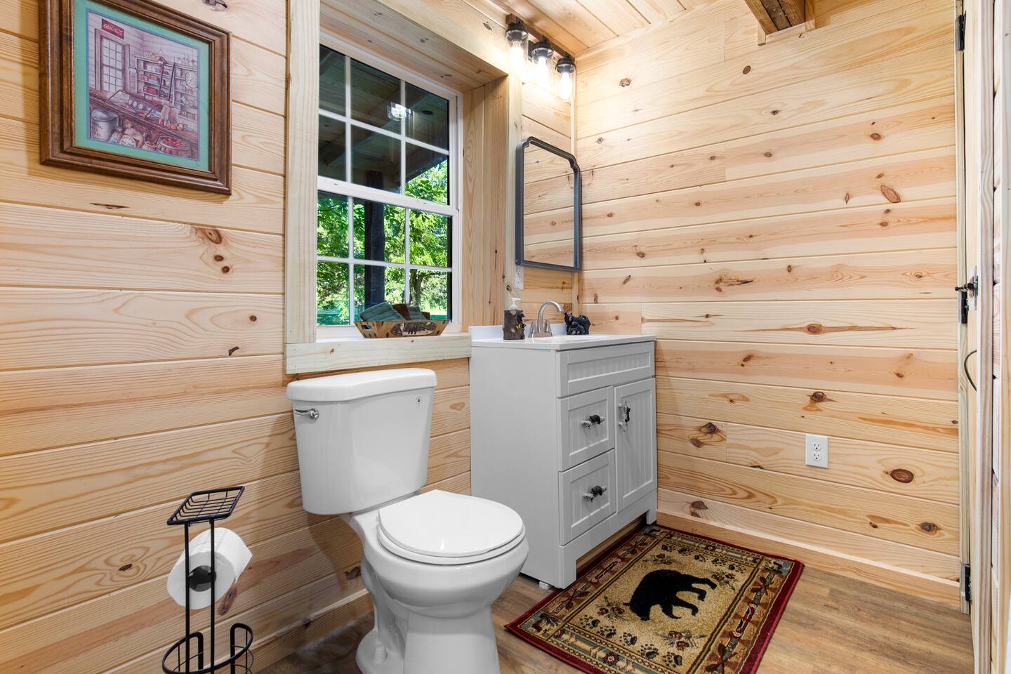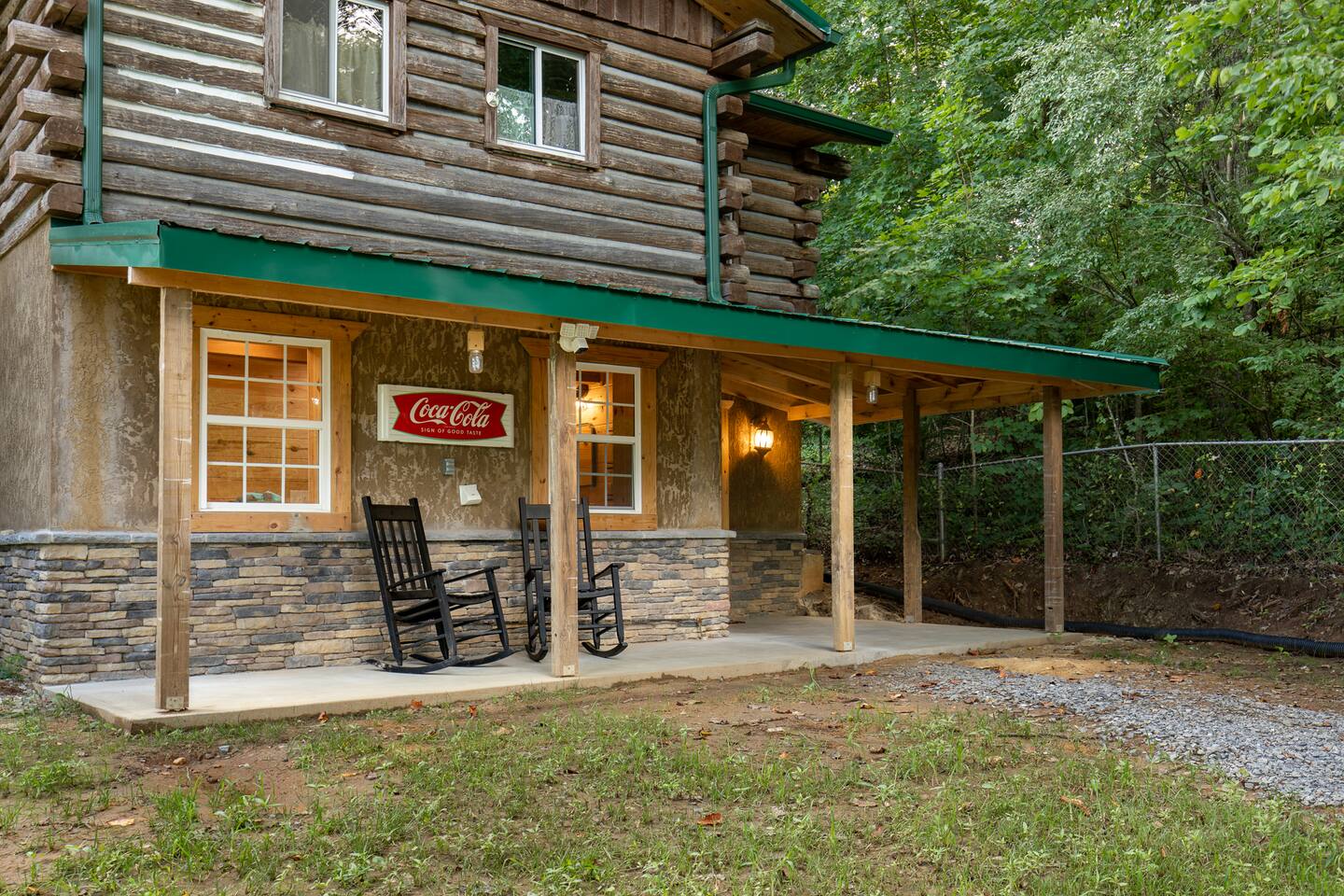 1 bedroom, 1.5 bath entire ground-floor hideaway, below a split-level log cabin. Easy access. No scary roads! 1 king bed, and 1 queen sofa bed., with TV in each sleeping space. Private driveway/entrance, large covered front porch, 1.5 miles to historic Harrisburg Bridge, 3 miles to tubing, 8 miles to Dollywood, 12 miles to The Island/ Pigeon Forge, 15 miles to Buc-ee's, 17 miles to Aquarium/Gatlinburg, 18 miles to GSM Nat'l Park Porter Trailhead, and 32 miles to Pigeon River rafting .
